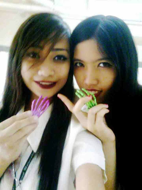 Jeth and I usually hang out at Mister Donut. It's where we have lunch and head to after classes while I wait for Michael. As we munch on donuts, brownies, and twists, we discuss freaky stuff -- horror and gory movies, Goth bands, torture devices, controversies on religions, mental disorders, death, the science of ghosts.. and we listen to Goth songs on my phone. We don't use my earphones because the volume isn't that audible especially when inside the store, so we use my phone's loudspeaker instead (but of course we tone it down). And Jeth and I speak in straight English while we talk. All this makes all the customers in the store smirk and look at us. Nah, all the looks they give us don't really matter as long as we're having a good time :D